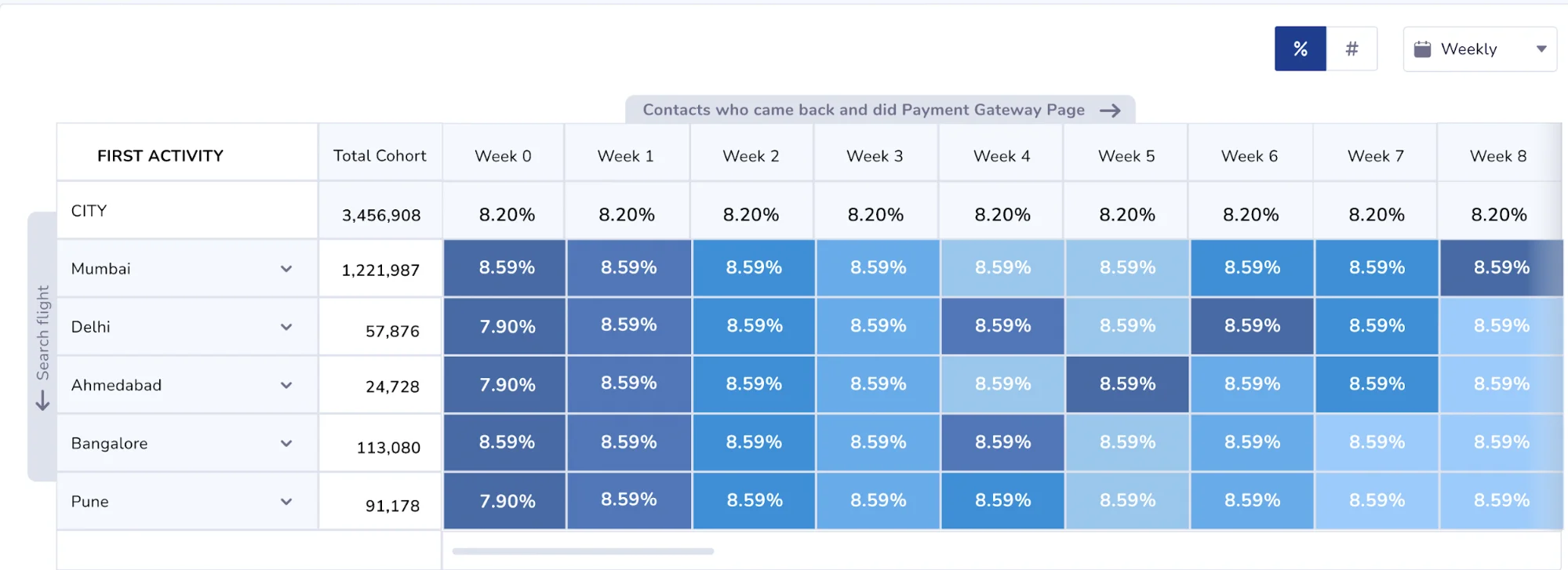 Ecommerce: Identify which product categories lead to higher repeat purchases. Let’s say users who bought from “Activewear” repurchase within 2 weeks, while “Formalwear” buyers return after 4 weeks. Use this insight to time loyalty campaigns or upsell flows based on cohort behavior.