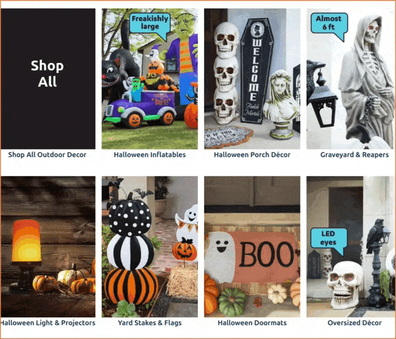 At Home made Halloween shopping more enjoyable and straightforward with the clever use of microcopy on its category and product pages. They answer common customer questions, such as “Is this skeleton lit—does it need power?” with engaging and descriptive text that enhances the shopping experience.