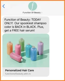 Function of Beauty understood the effectiveness of direct communication, leveraging SMS to deliver timely offers that capture attention. With 80% of people opening their messages within five minutes, they crafted a ‘scary good’ back-in-stock announcement that fits perfectly with the Halloween theme.