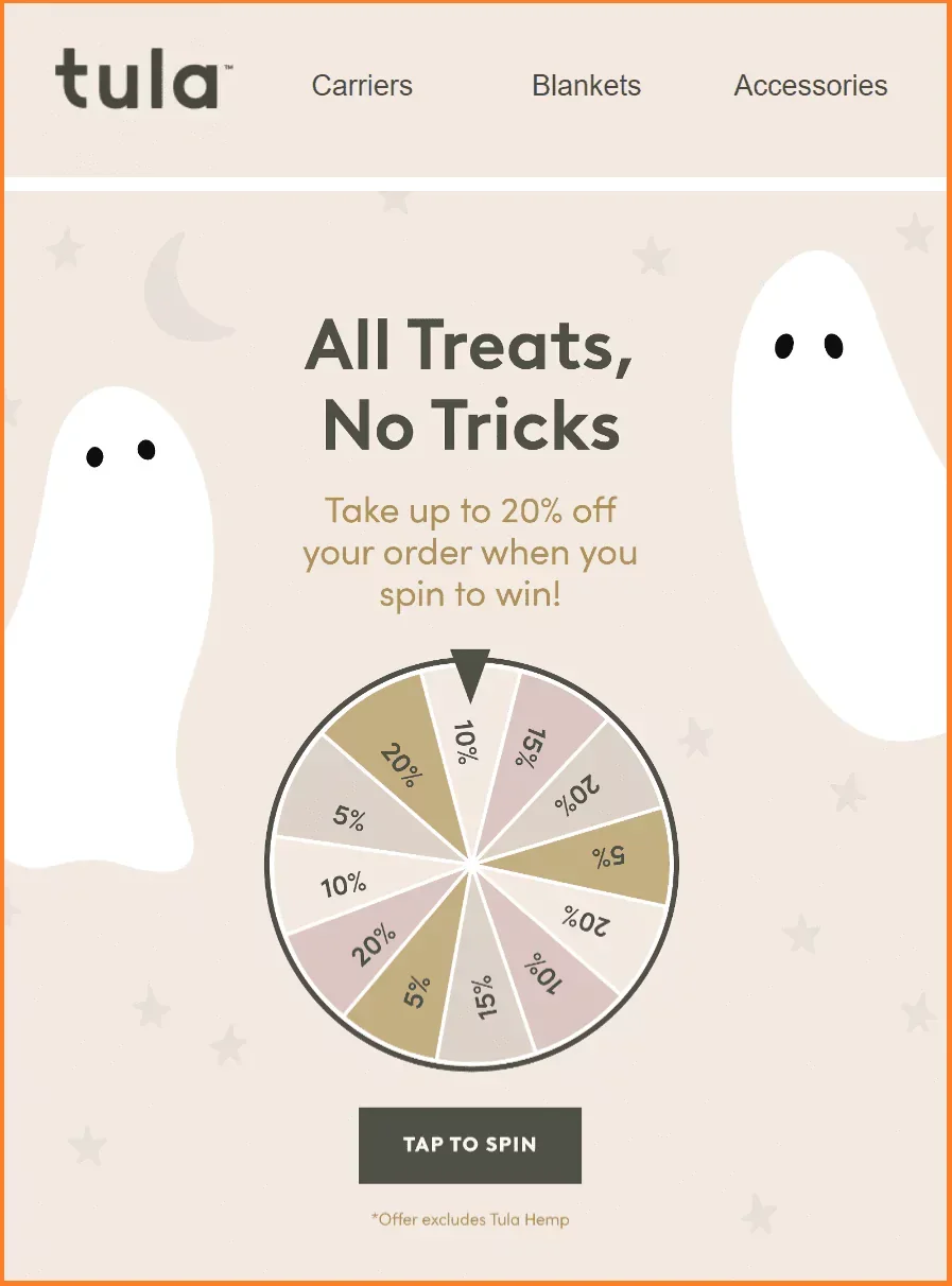 Incorporating interactive content and game mechanics can boost the average order value (AOV) by 15% in email campaigns. Tula effectively applied this approach by leveraging gamification, tapping into users’ curiosity, and encouraging subscribers to click through and engage with their content.