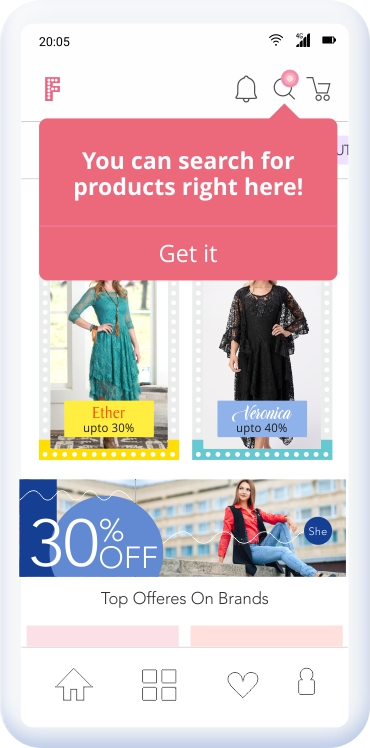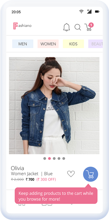 Nudges are all about the context. To create context-specific journeys, nudges must be shown at the right moment in the user journey. Every user follows a certain path on the app – for instance, in an ecommerce app, the user flow looks like – Sign-in → browse products → add to cart → check out. Place nudges at the most relevant points within the user journey flow where users are most likely to interact with the nudge and take action.