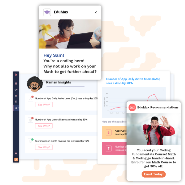 Allow our AI engine, Raman, to accurately predict learner segments that are most likely to buy or upgrade a course and engage accordingly