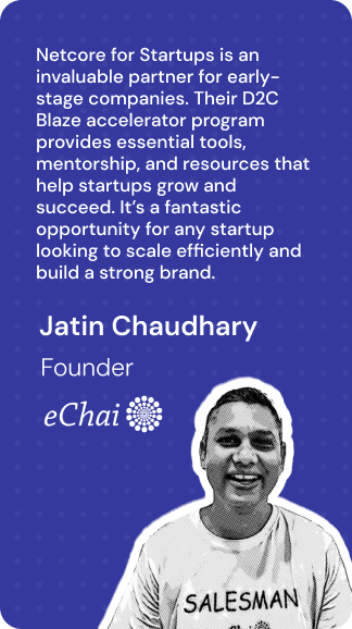 Startups that have been in operation for less than 3 years, secured under $15 million in funding, and are not currently Netcore customers are eligible to apply. We look for innovative and ambitious teams with healthy business traction.