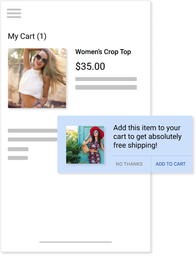 The highest moment of buying intent in the entire user journey, across the spectrum of business types, occurs on the cart page. Capitalize on this intent by deploying a display nudge with additional products that pair well with the cart items